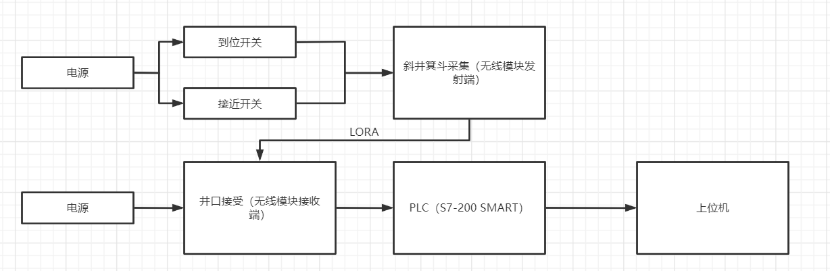 針對斜井箕斗在運輸過程中易出現脫軌,設計了新型無線通信傳輸網絡系統。通過安裝于礦車箕斗底部的接近開關可以實時監測礦車與軌道的接觸狀態。在井口安裝到位傳感器,用來監測箕斗的到位狀態。在滾筒上安裝霍爾元件通過計數滾筒所轉圈數間接知道礦車的行程。利用西門子CPU ST20將信息發送到井口接收裝置,采集及預處理到的數據通過無線模塊遠距離發送至上位機的無線模塊接收端,接收端與上位機進行通訊。